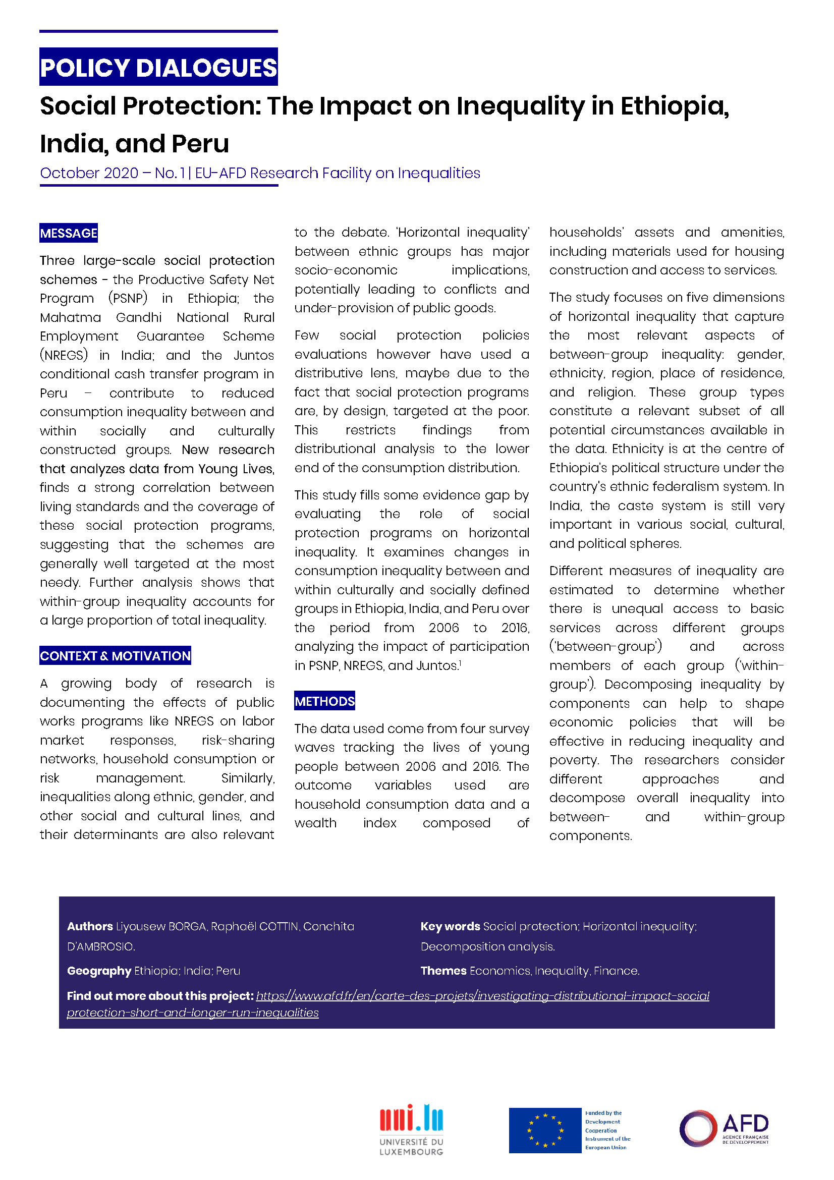 Social Protection: The Impact on Inequality in Ethiopia, India, and Peru
