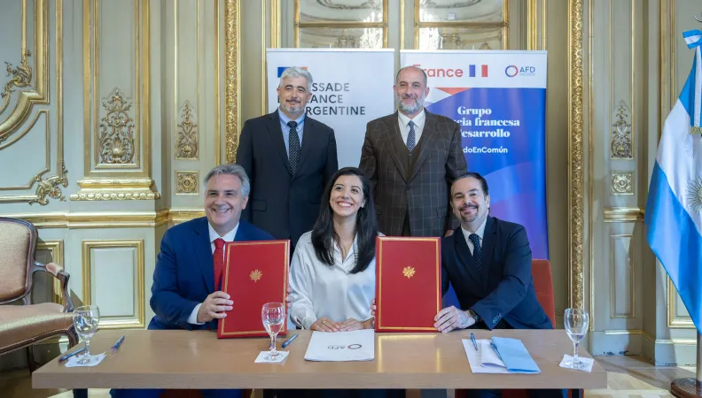 La firma del préstamo otorgado por la AFD a la Provincia de Córdoba se llevó a cabo en la Embajada de Francia en Buenos Aires, con la presencia del Sr. Romain Nadal, Embajador de Francia en Argentina; del Sr. Martín Llaryora, Gobernador de la Provincia de Córdoba; de la Sra. Lorena Chara, Directora de la AFD en Argentina; así como de representantes de autoridades nacionales y provinciales. Este evento refleja el fortalecimiento del vínculo estratégico entre Francia y la provincia, basado en la confianza, la cooperación y la búsqueda de soluciones sostenibles para el sector público.